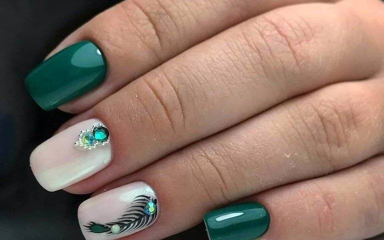 Контрастного цвета камни одинаково красиво смотрятся на темном, светлом, пастельном покрытии. Нежные, пудровые оттенки лака сочетаются с прозрачными или одного цвета с покрытием камнями.