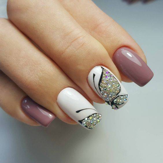 Тем, кто не любит различные рисунки или наклейки на ноготках, рекомендуем попробовать выложить бабочку из страз
