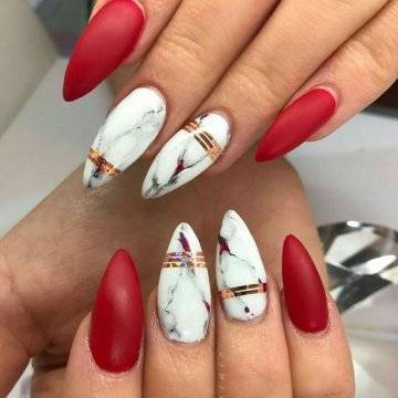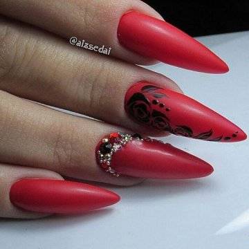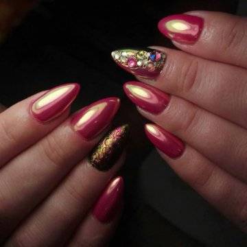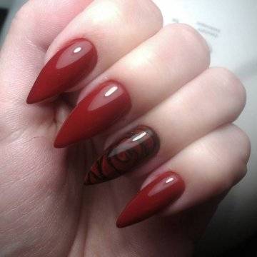 Каким же будет модный маникюр на острые ногти 2022-2023? Современная нейл-индустрия оснащена широчайшим спектром всевозможных способов, методов и элементов маникюрного декорирования, благодаря которым можно водворить в жизнь самые удивительные идеи и художественные фантазии. Острые ногти не являются исключением – есть масса вариаций использования дизайнов с рисунком, со стразами, с росписью, с аквариумом, с песочной россыпью – то есть всевозможными ногтевыми декорациями, которые позволят максимально украсить ногтевую пластину с заострённым кончиком. При этом за основу покрытия можно брать лак, гель, гель-лак, шеллак, мат, глянец, использовать зеркальный эффект и эффект кошачьего глаза – словом, абсолютно всё, что только девичьей душе угодно.