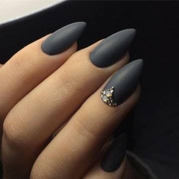 Для ногтей такой длины и формы подойдет абсолютно любой матовый цвет – от черного до пастельных оттенков.