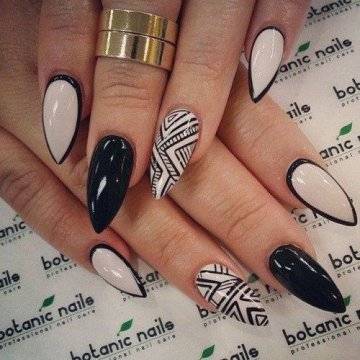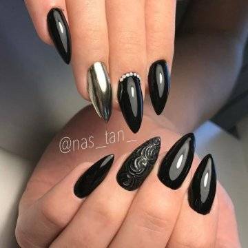 2. Экстравагантность такого выбора маникюра часто присуща сексапильным женщинам – опять же, речь идёт о хищности и животном инстинкте, которому способствует такое проявление индивидуальности; многие мужчины, обращая внимания на остроту женских ноготков, понимают, что девушка перед ними, так сказать, «с перчинкой».