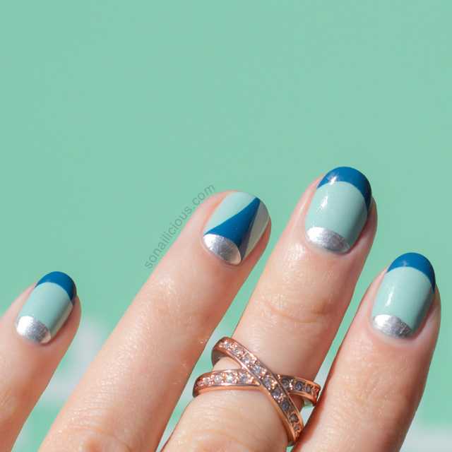При создании двойного французского маникюра, другим цветом закрашивается не только кончик ногтя, но и лунка, таким образом, данный маникюр сочетает в себе классический френч и лунный маникюр. Создательница влиятельного ногтевого-блога sonailicious.com, наша соотечественница Мария Влежко, дополнила свой двойной френч интересными деталями, от чего маникюр стал еще элегантнее и моднее.