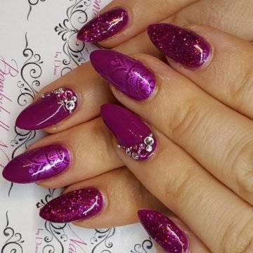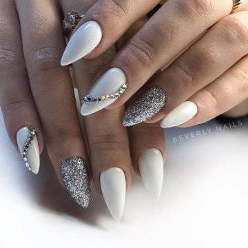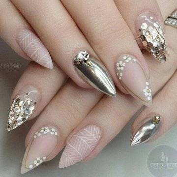 Блестки ассоциируются с вечерним маникюром. Золото и серебро, крупные стразы и мелкая россыпь блесток – это беспроигрышный вариант для торжественного вечернего мероприятия, новогодней вечеринки и любого выхода в свет, где, в прямом смысле, нужно блистать.