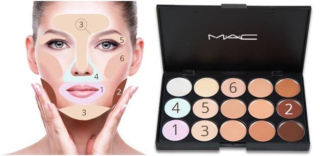 Плотный консилер используется для контурирования. Тёмные и светлые оттенки делают лицо рельефным. С помощью техники возможно визуально сделать взгляд распахнутым, скулы – более высокими, нос – уже. Для контурирования потребуются корректоры на два тона темнее и на два тона светлее, чем цвет кожи.