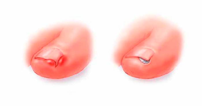 Это состояние, при котором край ногтевой пластинки врезается в окружающую кожу, что причиняет боль и может приводить к инфицированию и нагноению. Может случиться с любым пальцем, но чаще всего встречается в больших пальцах стоп.