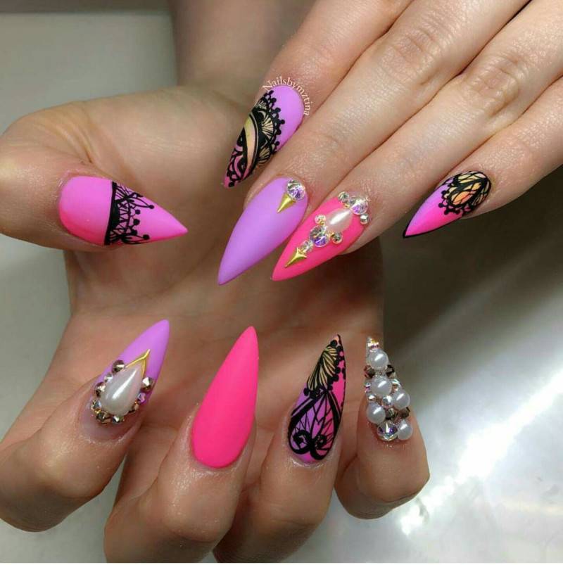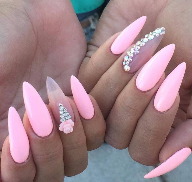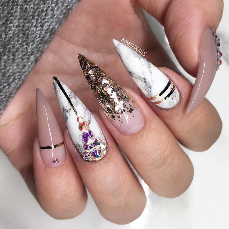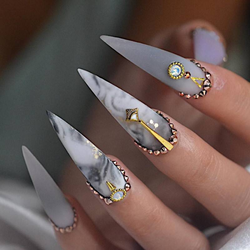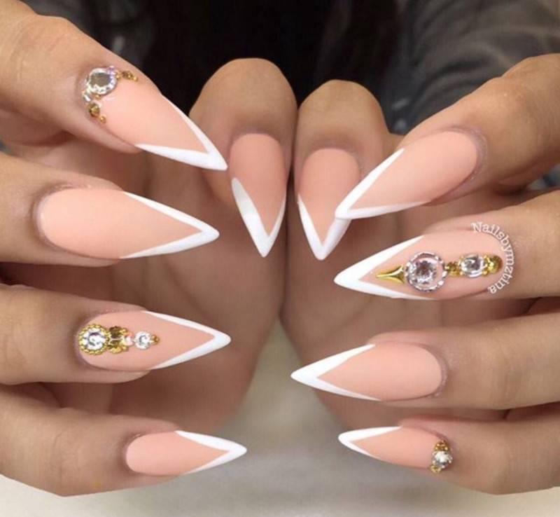 Острые ногти – выбор далеко не каждой женщины. Форма ногтей смотрится очень выразительно и заметно, к тому же часто нуждается в коррекции. Если вы счастливая обладательница острых ногтей, то не бойтесь экспериментировать с декором. Предлагаем вам большую фото-подборку шикарных идей острого маникюр со стразами. Выбирайте и создавайте подобные нейл-арты на своих ноготках.