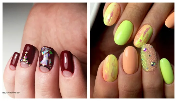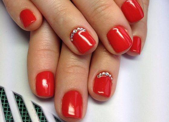 Вариант ниже не совсем подходит для массивной, тяжёлой инкрустации, но также часто применяется для крепления маленьких стразинок с плоским дном. Сегодня на пике популярности яркие цвета лака, такие как красный и розовый. Они отлично сочетаются с любой одеждой и подчеркивают женственность