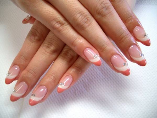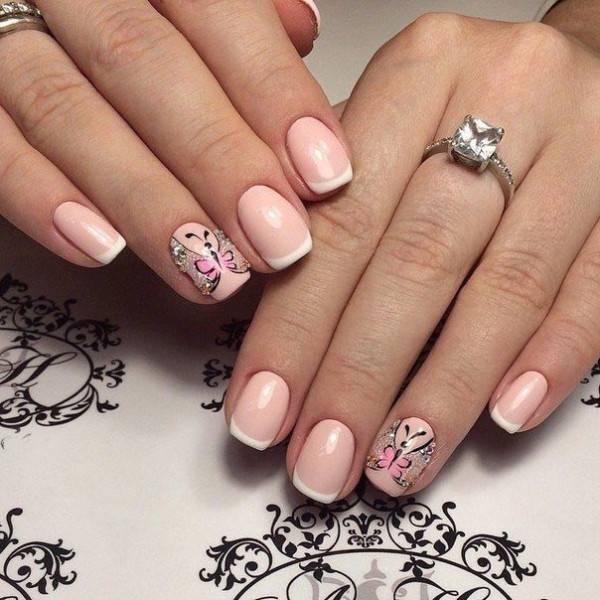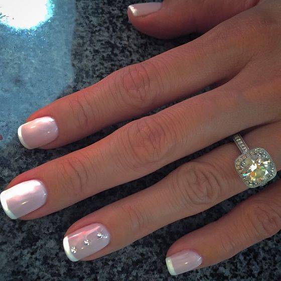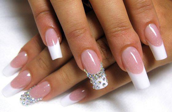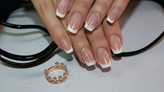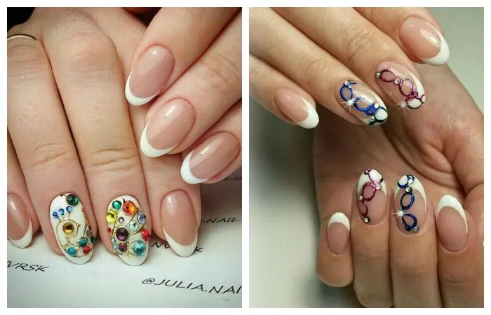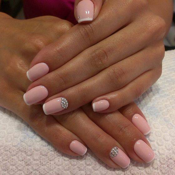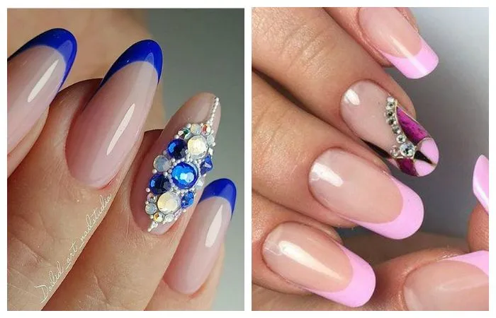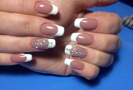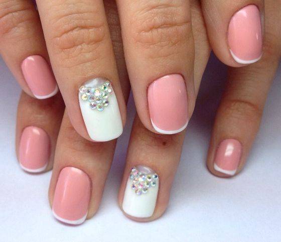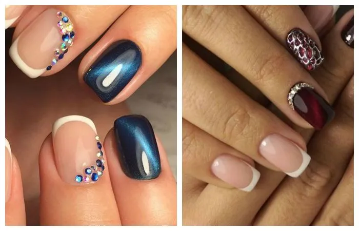 В новом сезоне по-прежнему популярны классические французские ногти. Однако стилисты рекомендуют разбавлять их красивым блеском. Можно использовать камни любого цвета и размера. Опытные мастера рекомендуют украшать только безымянные пальцы. В этом случае дизайн ногтей не столь изыскан, как мог бы быть, и является неудачным.