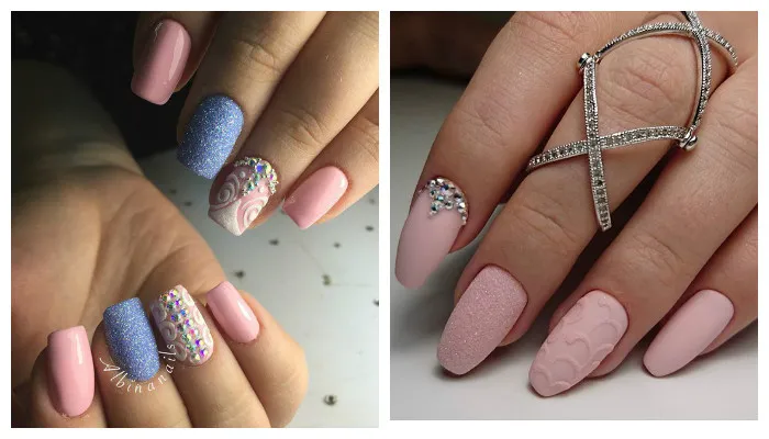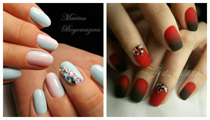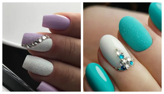 Каждый год появляются новые техники маникюра. В 2020 году будут популярны комбинации в маникюре, и стразы станут неотъемлемой частью этого. Актуальным видом дизайна является сочетание матовых ногтей со стразами, нюдового гель-лака, крупных камней и зеркального украшения стразами с мелкими бусинами.