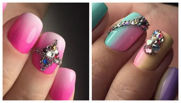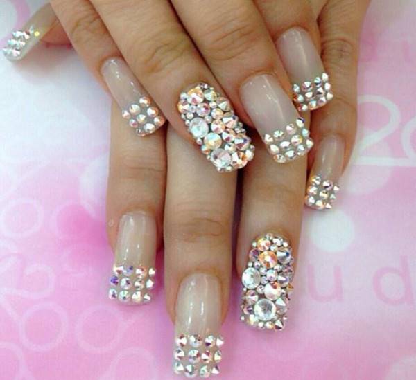 Вот несколько фотографий маникюра со стразами, выполненного в разных техниках и стилях.