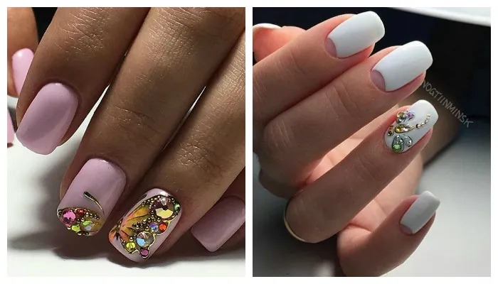 Каждый год появляются новые техники маникюра. В 2020 году останется популярным комбинированный маникюр, причем стразы будут неотъемлемой его частью. Актуальными видами дизайна будут инкрустация матовых ногтей стразами, сочетание гель-лаков nud со стразами, декор зеркального маникюра крупными камнями и микробисером.