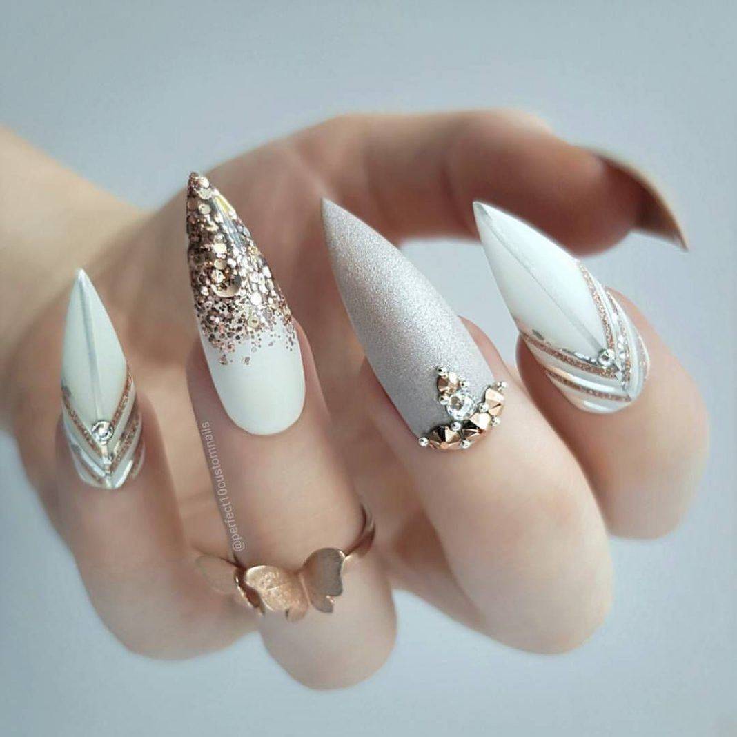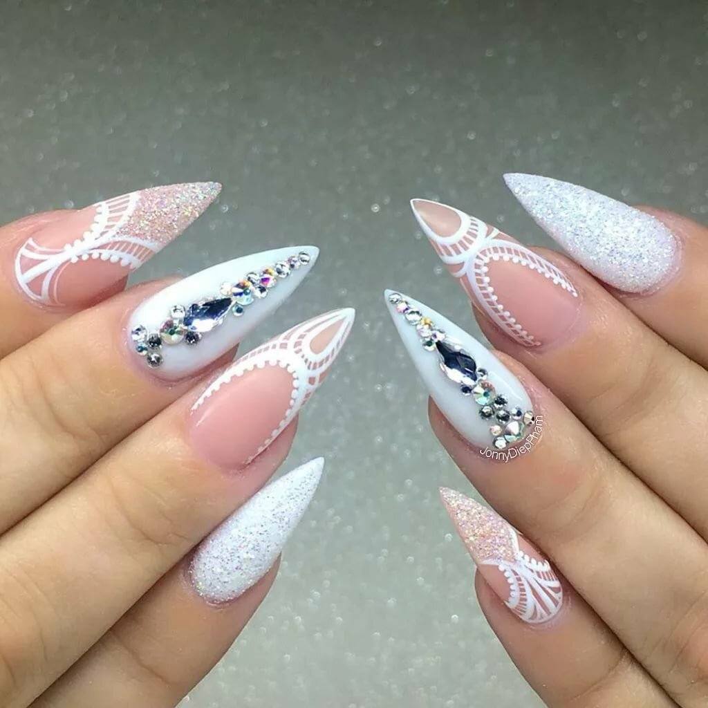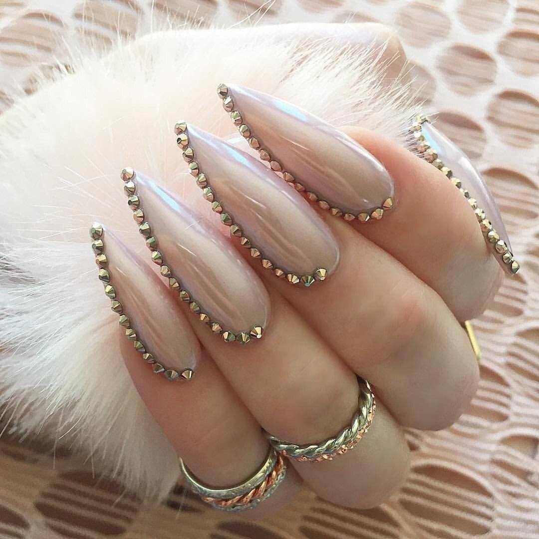 Острые ногти – выбор далеко не каждой женщины. Форма ногтей смотрится очень выразительно и заметно, к тому же часто нуждается в коррекции. Если вы счастливая обладательница острых ногтей, то не бойтесь экспериментировать с декором. Предлагаем вам большую фото-подборку шикарных идей острого маникюр со стразами. Выбирайте и создавайте подобные нейл-арты на своих ноготках.