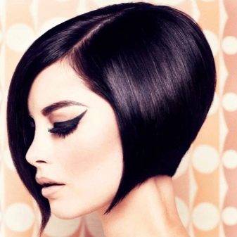 В соответствии со схемой такого каре, волосы стригутся до линии подбородка или даже до уровня ключицы, а с противоположной могут полностью открывать ухо.