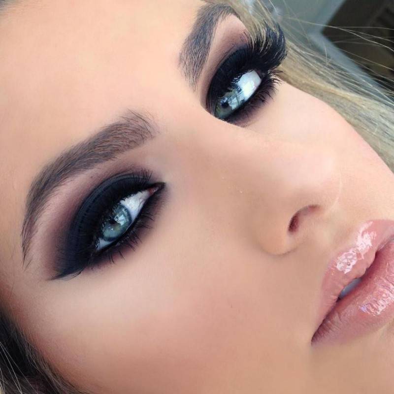 Черный макияж для русых волос и голубых глаз фото