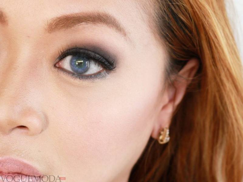 Рассмотрим технику вечернего макияжа для голубых глаз. Представленный вариант прекрасно подойдет обладательницам серо-голубых глаз.