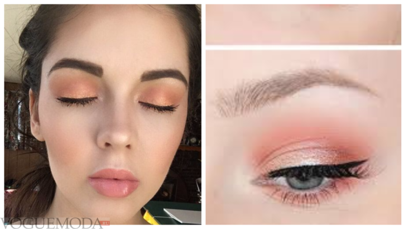 Макияж для голубых глаз с персиковыми тенями фото