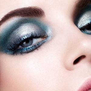 Вечерний макияж для голубых глаз выполняется тенями интенсивного, яркого цвета, используются контрасты. В качестве базового цвета попробуйте оливковые, золотистые, коричневатые оттенки. В качестве основных цветов используйте сочетания синего, розового цвета, фиалкового, сиреневого, цвета морской волны, серо-голубого, пурпурного, зеленого или кораллового. Секрет эффектности заключается в тщательной растушевке цветов по их границам и покрытие сверху жемчужными, перламутровыми, серебристыми или золотистыми искринками блесток, благодаря этому создается мерцающее сияние, которое лишь намекает на присутствие тех или иных цветов в макияже.