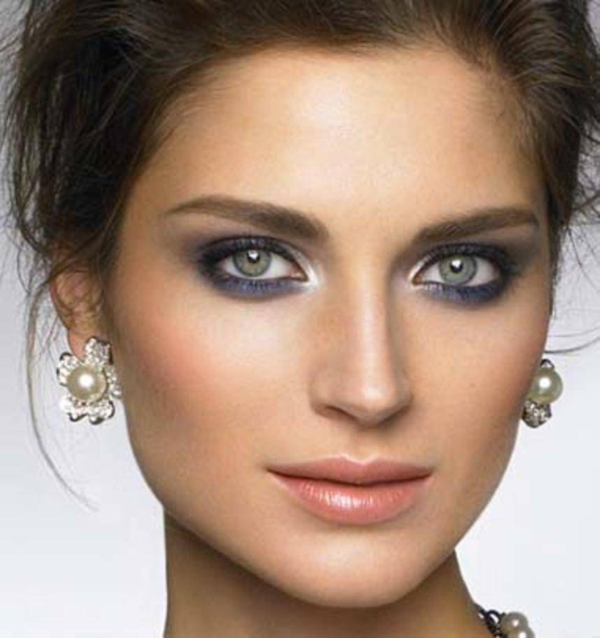 При выполнении вечернего макияжа обязательно четко прорабатывайте линию бровей. При светлой фарфоровой коже особенно эффектно смотрится макияж, выполненный в угольно-сером и черном цвете. Чем смуглее кожа, тем эффектнее смотрятся тени золотистых оттенков.