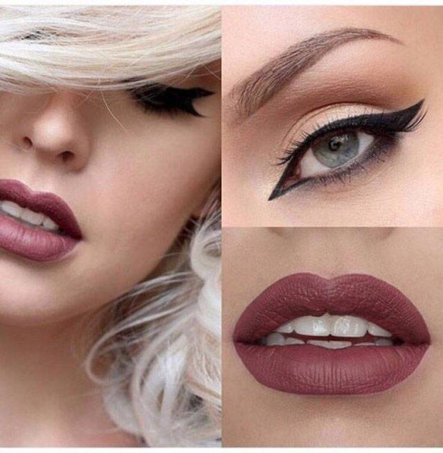 Макияж, где первостепенную роль играют яркие губы, желательно вовсе избавить от применения теней или уменьшить их влияние на облик до минимума. Глаза подчеркиваются лишь тушью и подводкой.