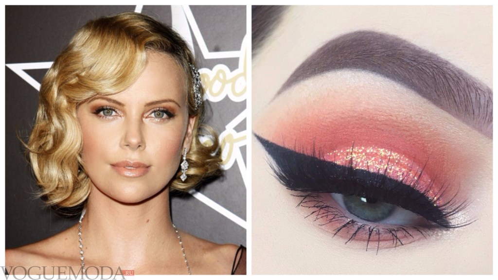 Макияж для голубых глаз с персиковыми тенями фото