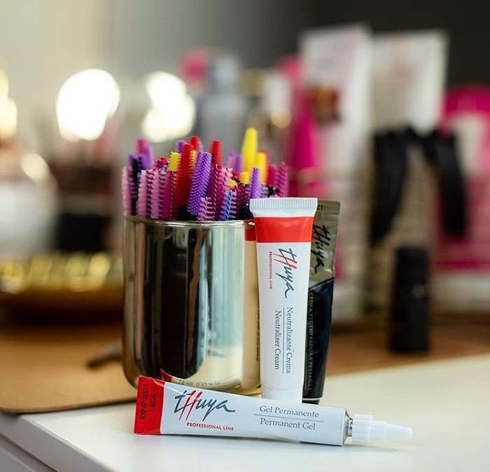 Для проведения манипуляции мастер использует пинцет для выщипывания лишних волос, щетку для расчесывания и придания формы, кисти для раствора, краску при необходимости, и состав для фиксации.