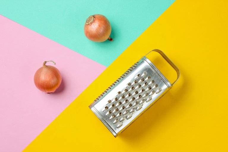 Воспользуйтесь соковыжималкой, мясорубкой, блендером или теркой (важно хорошо отфильтровать кашицу через марлю или ткань, чтобы в маске не было никаких луковых частичек).