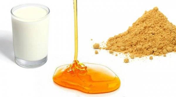 Это вариация популярной медово-горчичной маски. Ложку порошка смешать с теплым молоком и добавить чайную ложку меда. Смесь после нанесения выдерживают до 15 минут.