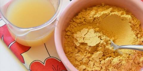 Живые дрожжи разводят в теплом молоке и оставляют бродить минут 40. В образовавшуюся массу добавляют яичный желток и по чайной ложке коньяка и жидкого меда. Маску наносят на кожу головы и по всей длине волос под целлофан и полотенце на пару часов.