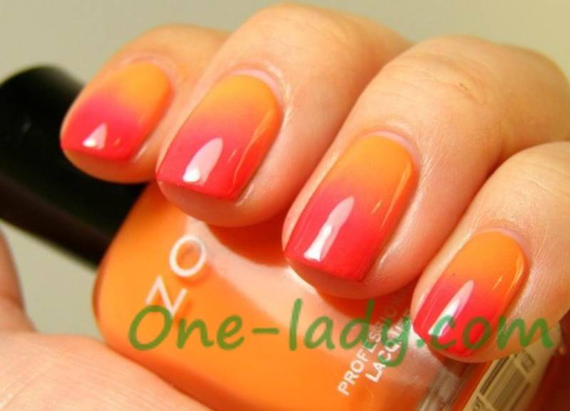 В маникюре используется несколько вариаций. Попробуйте накрасить все ногти на руке, от мизинца и до большого пальца, в различных тонах. Можно немного усложнить процесс. Используя губку, вы легко украсите каждый ноготь в два или три оттенка одного цвета. Подобный маникюр в мире нейл-арта называется «Омбре».