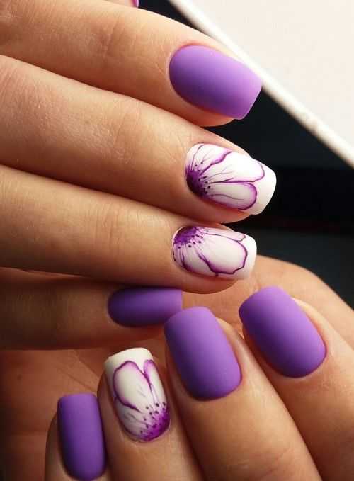 Нежный цветочный маникюр можно сделать с помощью темно-синего и белого лаков. Для получения сдержанного голубого цвета просто смешайте две их капли перед нанесением: