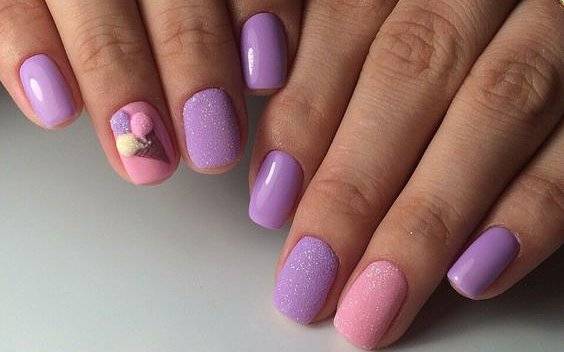 В данном случае отлично сочетаются цвета, которые расположены в одном цветовом круге на противоположных сторонах. То есть фиолетовый и желтый, синий и оранжевый, а также зеленый и красный цвет. На первый взгляд такое сочетание может показаться слишком ярким. Чтобы маникюр выглядел привлекательно, выбирать стоит одинаковые по степени яркости оттенки: либо светлые, либо темные, либо пастельные.