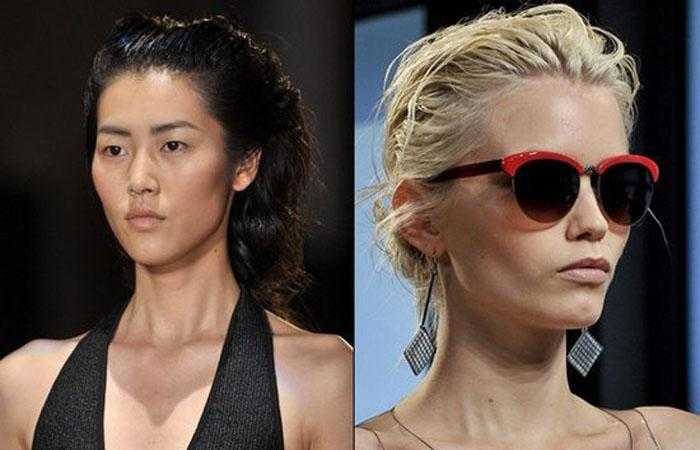 Влажная укладка вновь вошла в моду несколько лет назад. Начиная с 2013 года, ее регулярно можно видеть на дизайнерских показах одежды. В разные годы мокрый эффект на локонах демонстрировали модели, представляющие коллекции таких брендов: