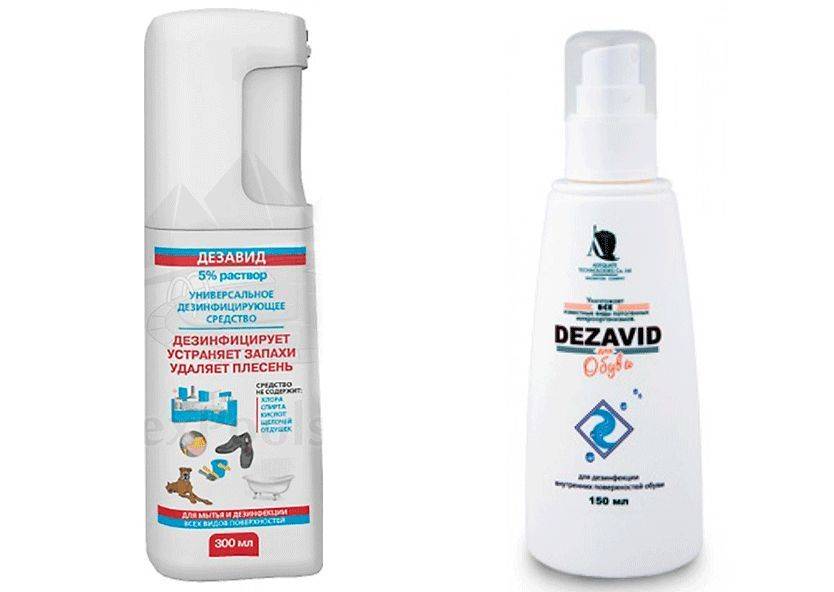 Он помогает справиться не только со спорами грибка, но и прекрасно выводит плесень на стенах влажных помещений. Выпускается Дезавид в виде раствора и аэрозоля. Последний вариант — более эффективный, так как позволяет обеззаразить даже самые труднодоступные места ботинка.