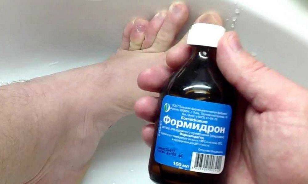 Обработка обуви при грибке ногтей на ногах формалином – старый, испытанный метод. Приобрести формалин сложно, но в продаже есть формалин содержащие препараты, самый известный из которых – формидрон