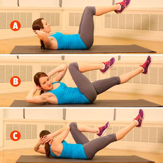 Разнообразие упражнений для мышц пресса позволит одновременно привести в тонус верх и низ живота, и сжечь подкожный жир. Здесь важную роль играет нагрузка, упражнения должны буквально вызывать ощущения жжения в мышцах. Последние повторения должны даваться с трудом, и их количество должно варьироваться от 15 – 30 повторений. Нужно выполнять комплекс упражнений без отдыха, сделав паузу только после завершения первого круга.