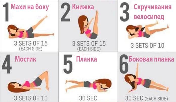 Каждая нагрузка по-своему влияет на скорость сжигания жиров, но только в комплексе, каждое из них будет действительно эффективным. Предлагаем ниже следующие упражнения, которые можно выполнять в домашних условиях, чтобы похудеть в области живота и боков.