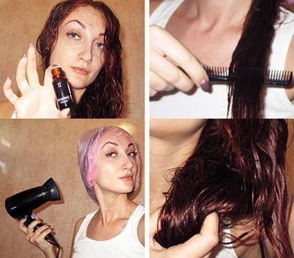 Особое внимание рекомендуется уделить кончикам. Понадобится снова надеть шапочку и повторить пятиминутный прогрев