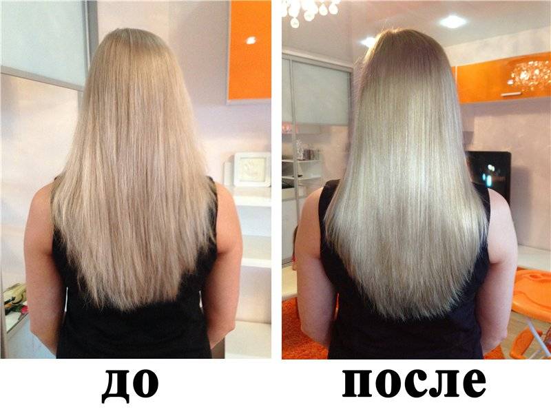 - Прическа становится объемней. Благодаря тому, что каждый волосок обволакивается экраном, общий объем шевелюры увеличивается на 10%.