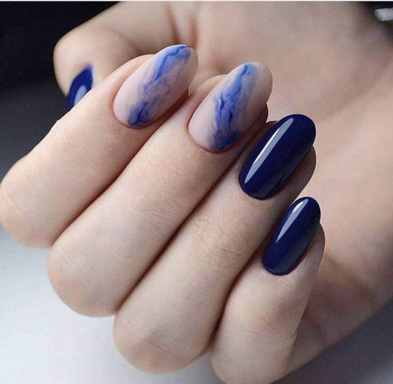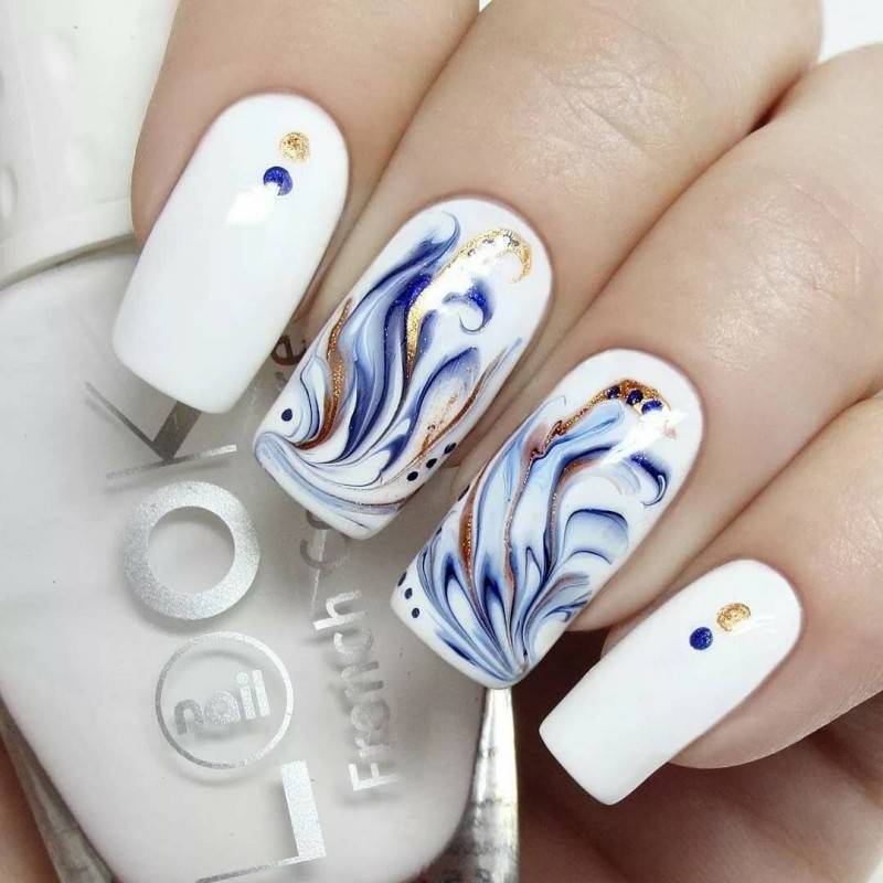 – указательный и средний или средний и безымянный. Для ярких женщин подойдут темные основные оттенки и светлые контрастные разводы. Необычно смотрится синий и белый с вкраплениями золота, ровно как и насыщенный зеленый, фиолетовый, желтый, черный, голубой.