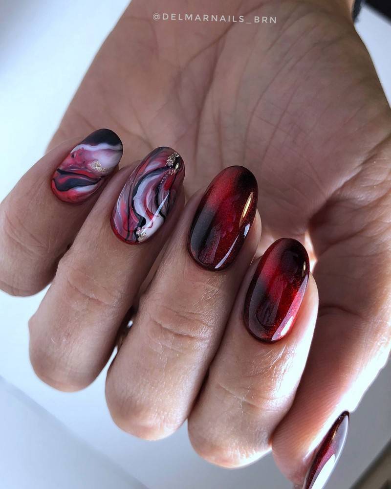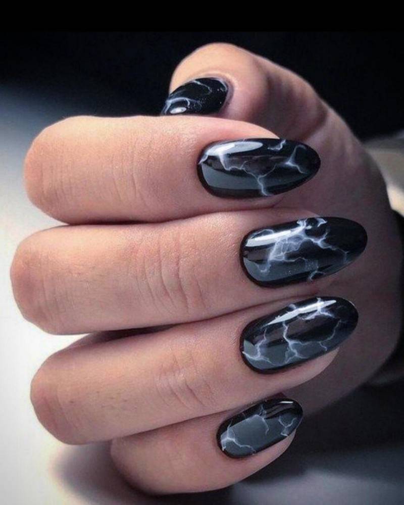 Симпатично смотрится покрытие под мрамор не на всех пальцах, а, например, только на безымянном и среднем.