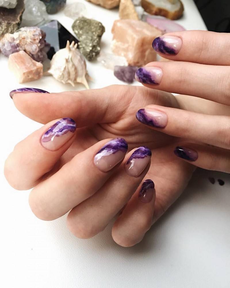 Воссоздать природный рисунок камня на ногте не сложно: существует несколько техник выполнения рисунка с использованием воды или обычной зубочистки. Сделать подобный рисунок на ногтях дома тоже можно, главное – вооружиться знаниями, терпением и несколькими баночками с гель-лаком.