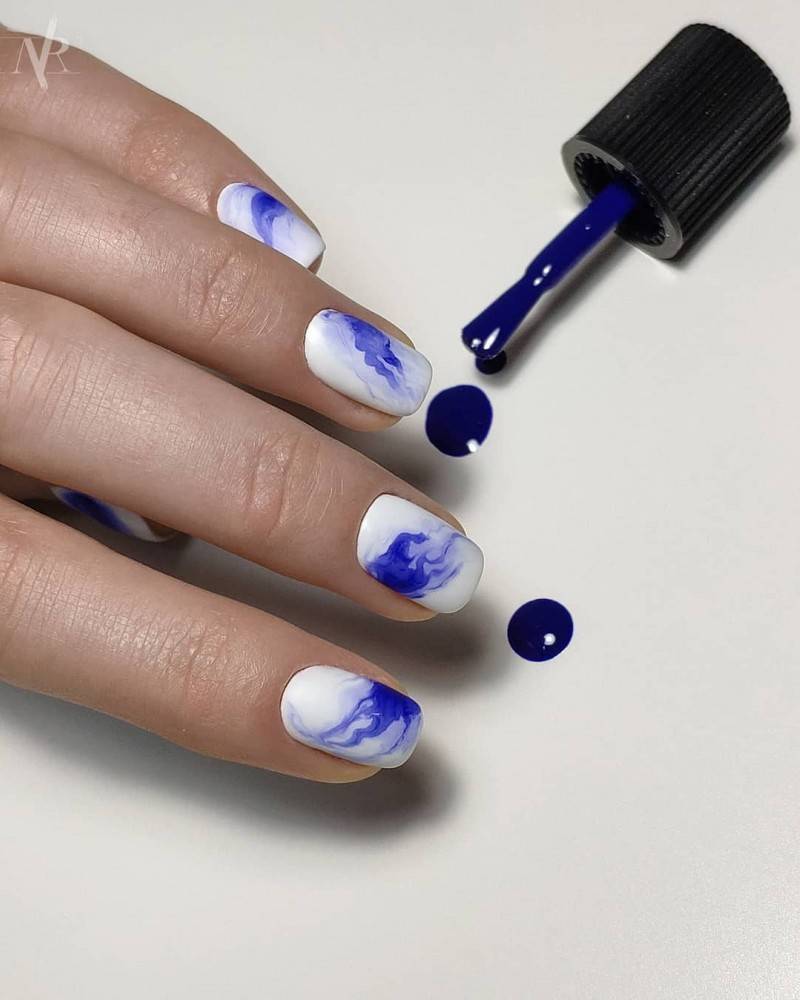 Маникюр с разводами легко создать самостоятельно, он выглядит оригинально и нестандартно. Разводы на ногтях – прекрасный способ разнообразить однотонный нейл-арт как в глянцевом, так и в матовом исполнении. Если вы еще не выполняли на своих ноготках трендовый дизайн с разводами, то самое время «примерить» его и понять насколько красиво и стильно он выглядит.