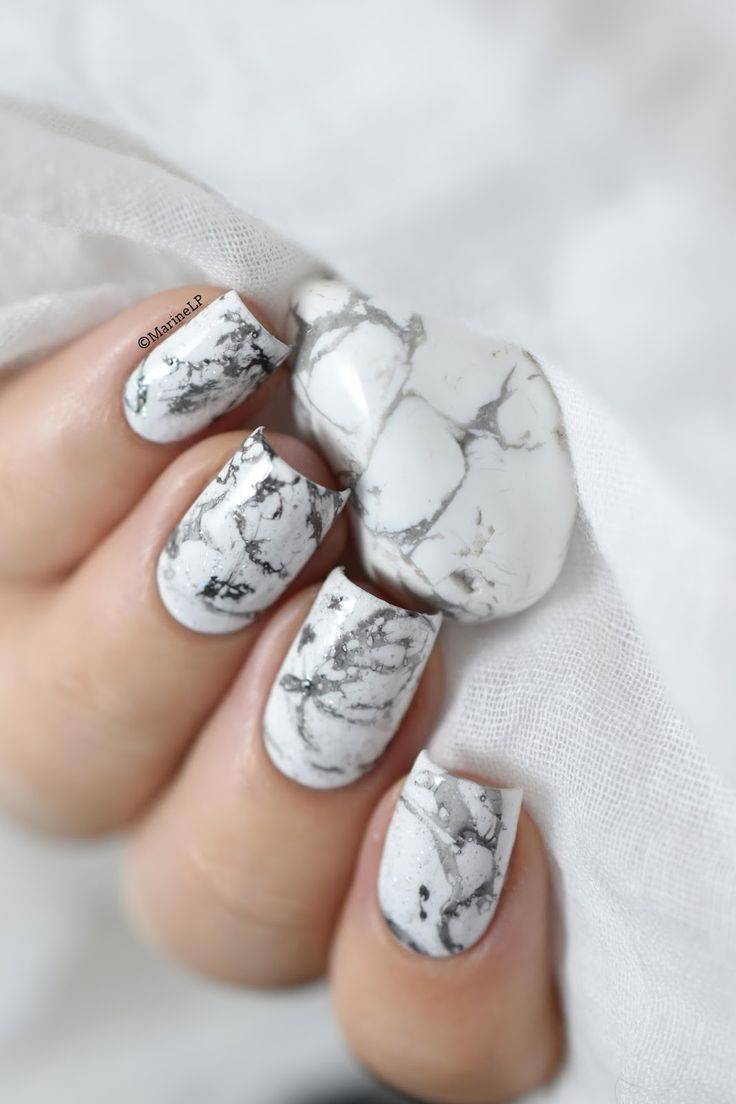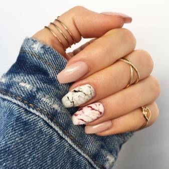 Симпатично смотрится покрытие под мрамор не на всех пальцах, а, например, только на безымянном и среднем.