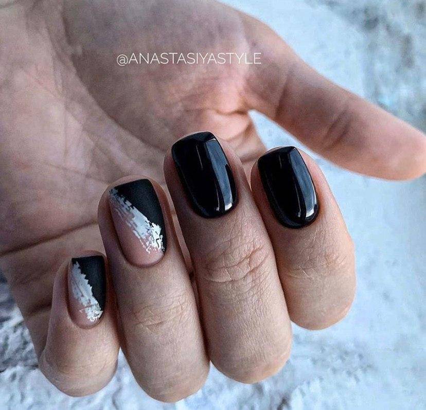 Остальные ногти можно покрасить в какой-нибудь приглушенный оттенок, голубой, розовый, белый или бежевый. Ассиметрия всегда выглядит хорошо и остается актуальной.