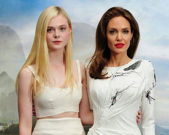 Звезде в «Малефисенте» досталась роль злобной феи, которая вынуждена пересмотреть свое жестокое решение (когда-то она в пылу гнева наложила заклятие на принцессу Аврору), а Эль играла ту самую принцессу в юности. Любопытно, что Аврору в детстве изображала дочка Питта и Джоли, маленькая Вивьен.