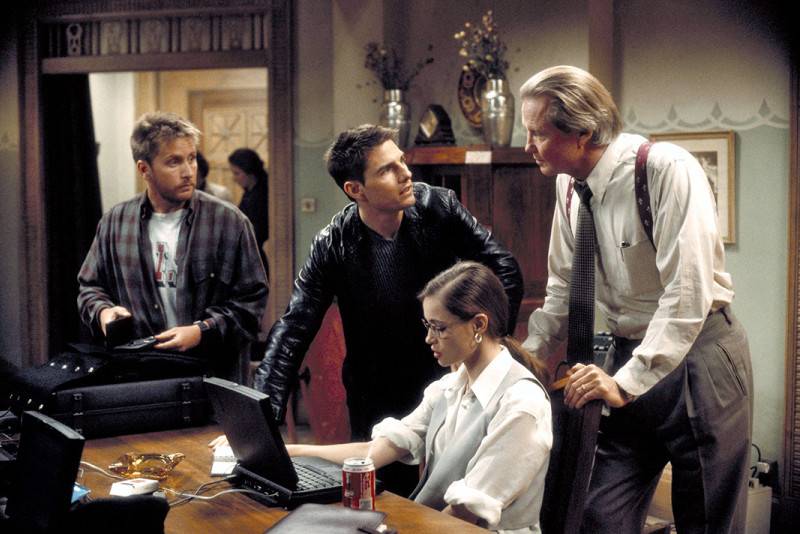 Эмилио Эстевес, Том Круз, Эммануэль Беар, Джон Войт в фильме «Миссия невыполнима», 1996 г.