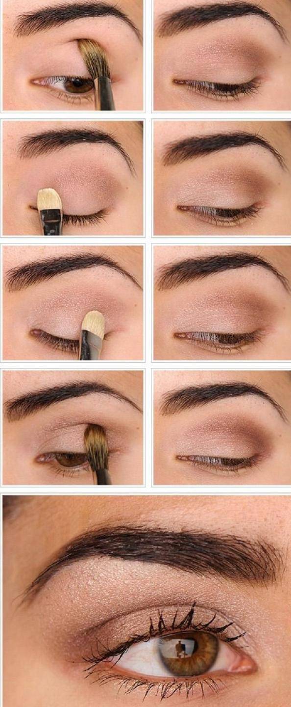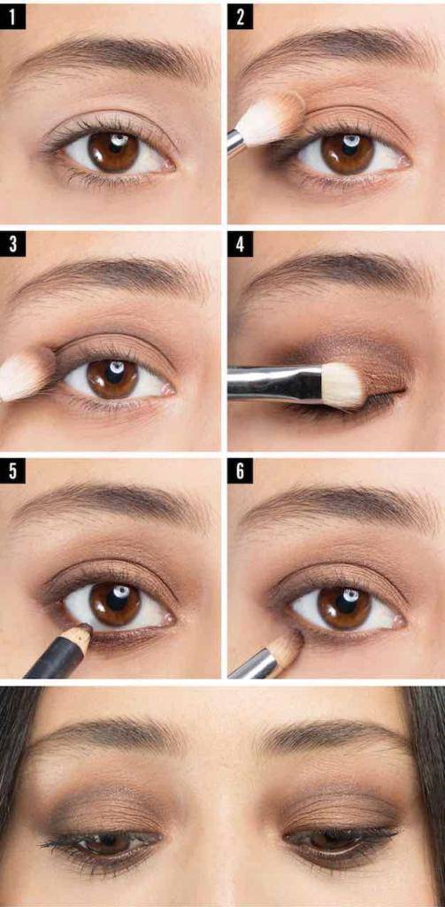Следующий вариант макияжа для карих на каждый день — инструкции и пошаговые фото: