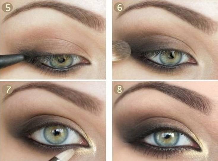 Достаточно нанести подходящие тени, переходя от складки до линии роста ресничек, затем дополнить образ, подкрасив реснички тушью. Им больше подойдут оттенки старого золота, темного бархата или бледной розы. Благодаря их нанесению получают эффект легкой дымки. В данном случае подводку серого цвета лучше не использовать.