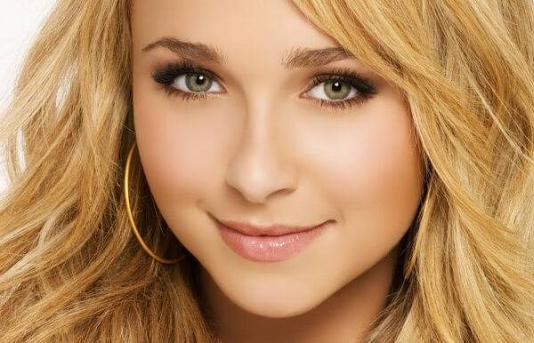 Золотые тени для зеленых глаз подходят идеально. Они могут быть, как основным цветом, так и дополнительным, если выбрана техника «банан», «бабочка», «кошачий взгляд». Румяна к такому варианту подходят персиковые. Также можно использовать бронзер, если кожа лица слегка загорела и приобрела золотистый оттенок. Хайлатер для такого макияжа просто необходим. Нанесите его на стандартные зоны — кончик носа, скулы, под брови, на ямочку губ.