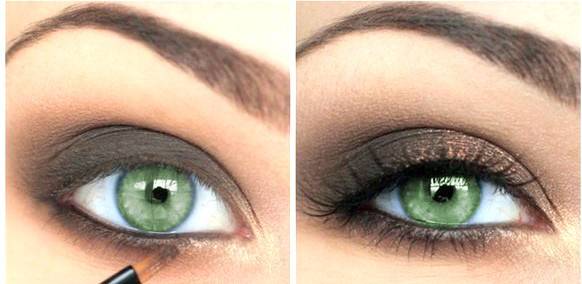Самый универсальный цвет теней для женщин с зелеными глазами — коричневый. Его можно нанести, как в горизонтальной технике, так и вертикальной. Также коричневый подходит для дымчатого мейка или в стиле «кошачьи глазки».